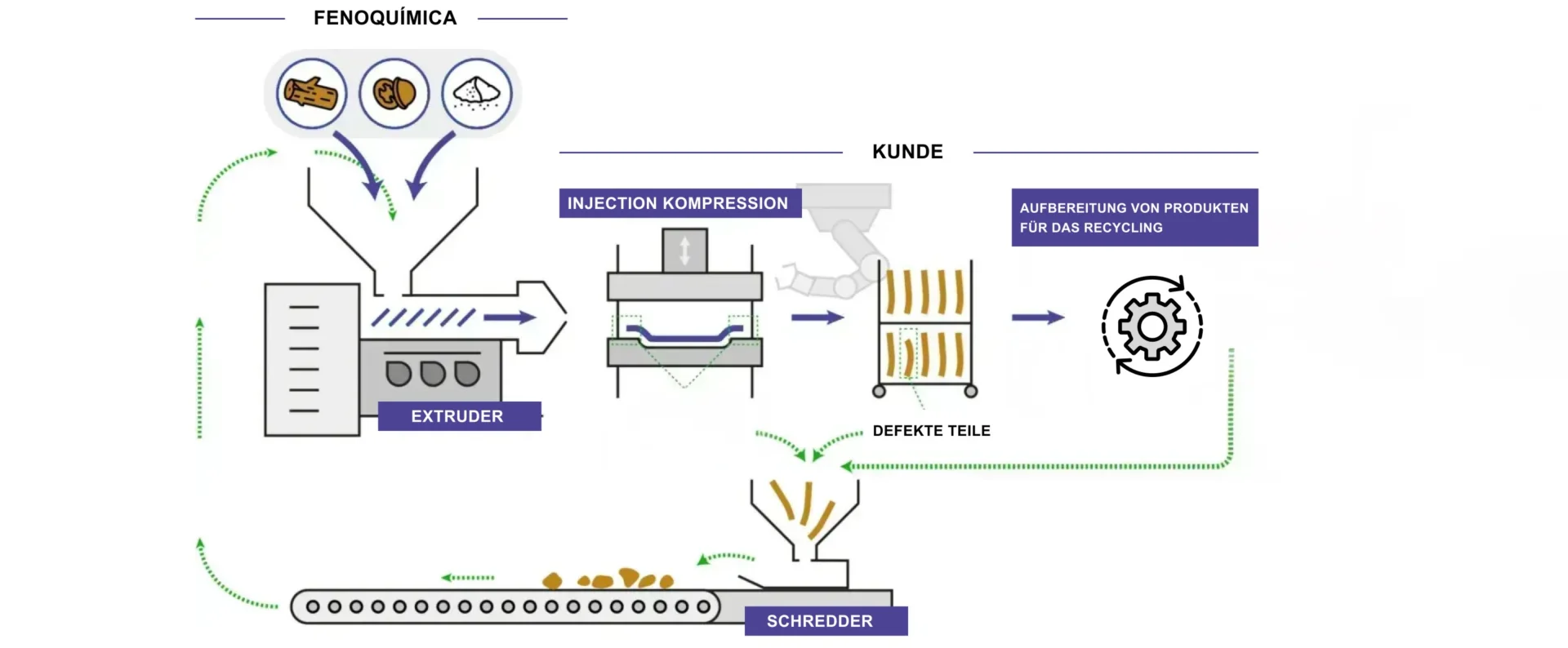Bei Fenoquímica ist Nachhaltigkeit kein neues Ziel: Wir arbeiten seit mehr als 35 Jahren mit dieser Vision. Seit unserer Gründung integrieren wir Lebensmittel- und Holzabfälle sowie recycelte Materialien als Grundlage unseres Produktionsprozesses. Darüber hinaus ist ein Teil des von uns verwendeten Rohstoffs PEFC-zertifiziert (Programme for the Recognition of Forest Certification), was sowohl eine nachhaltige Forstwirtschaft als auch die verantwortungsvolle Herkunft unserer Rohstoffe garantiert.