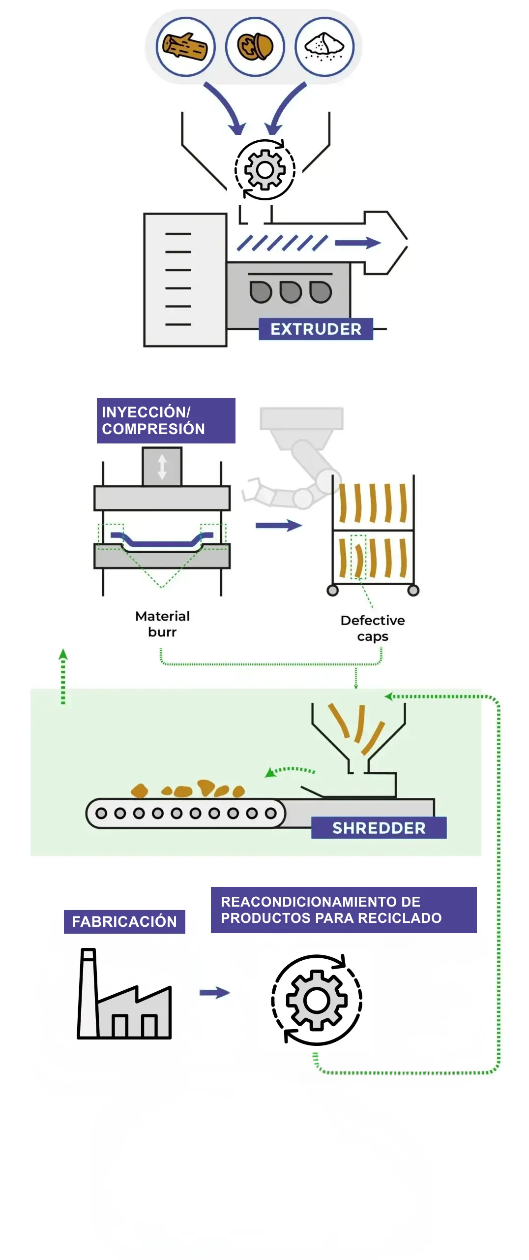 Trituramos y reprocesamos la rebaba del material y producto que no cumple con los estándares de calidad para fabricar nuevo Versagrit.